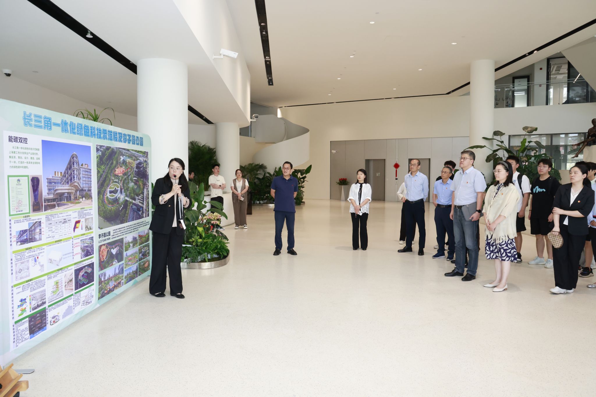 在上海建工羿云科技党支部书记、总经理钱芸陪同下,国产亚洲精品美女久久久计算机学院党委书记朱宏涛,党委副书记、副院长赖练,副院长李晓强及青年教师、学生代表与羿云科技党员共同参观了长三角绿色科技示范楼。