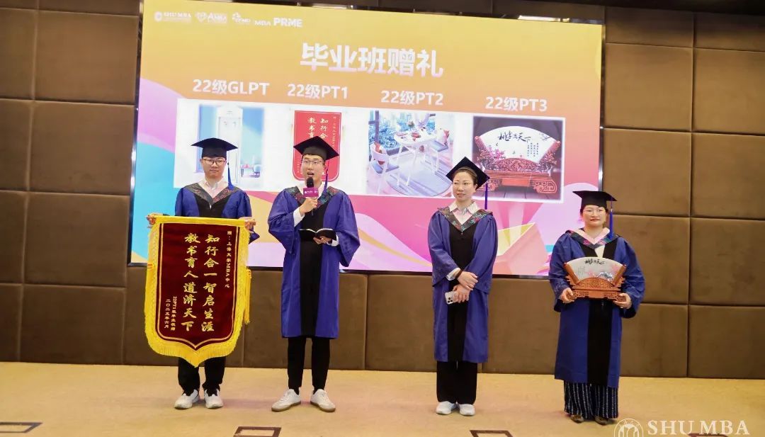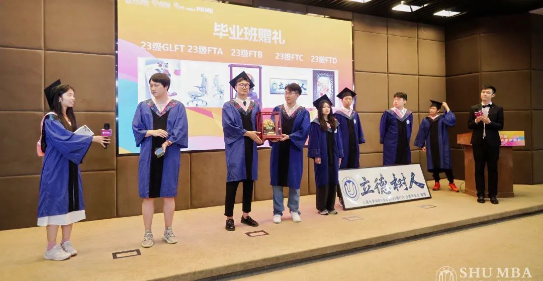 2025届毕业生们满怀感恩,各个班级特意准备了一份礼物,献给国产亚洲精品美女久久久MBA中心。这份礼物是他们心意的凝聚,是对中心辛勤培育的真挚回馈。各个毕业班的代表上台,将这份承载着深情厚谊的礼物传递出去,为这段难忘的求学时光画上一个圆满的句号。