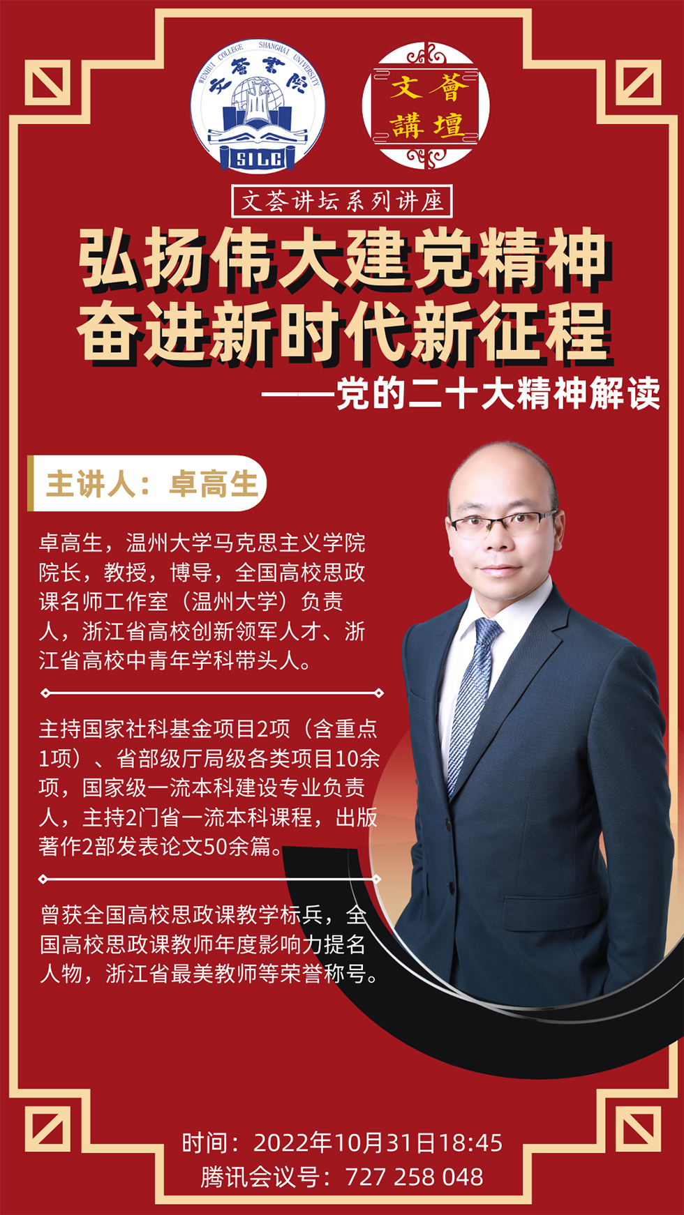 文荟讲坛系列讲座“弘扬伟大建党精神,奋进新时代新征程”——党的二十大精神的解读